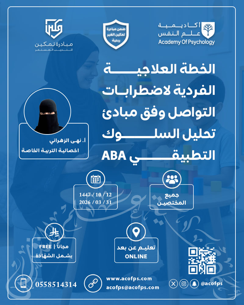 الخطة العلاجية الفردية لاضطرابات التواصل وفق مبادئ تحليل السلوك التطبيقي ABA