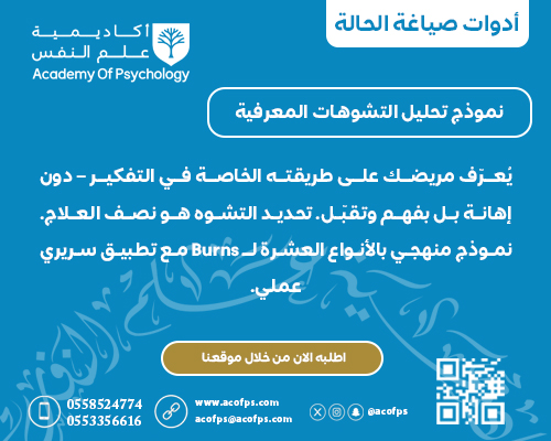 نموذج تثقيفي وتحليلي من 6 صفحات يُعرّف المريض بأنماط تفكيره الخاصة.